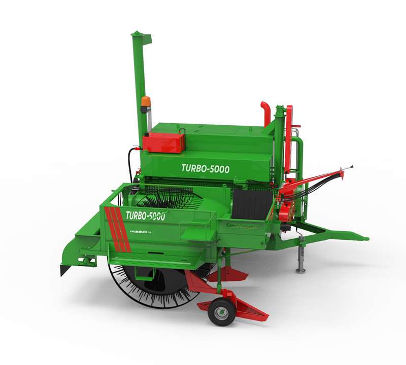 TURBO 5000 Tam Otomatik kabak toplama makinesi sayesinde kabak eken çiftçilerin korkulu rüyası haline gelen insan gücü gereksinimi ve işçi temini tarihe karışmış olup yüksek iş gücü kapasitesi ile günlük 90.000-150.000 m2 alan kabak hasat edilerek çekirdeği ayrılabilmektedir. TURBO 5000 Tam otomatik kabak toplama makinesi sayesinde kabakların insan gücüne gerek kalmadan tarladan toplanarak parçalama haznesine gönderilmesine 1.batur haznesinde çekirdekler ayrıştırılıp 2. ve 3. elekte çekirdeğin elenerek depoya aktarılmasına ve depo haznesindeki biriken çekirdeklerin otomatik olarak boşaltılmasına imkan sağlamaktadır. Ayrıca makinemize fan eklenerek çekirdeğin kurutulmasına %20 olanak sağlar. Aynı zamanda tefek kırıcı tarladaki kabağın bitkisini ve tarlada yetişen yabani bitkileri makine içerisine girmemesi için yapılmış bir sistemdir. Bu makineyi diğer makinelerdan ayıran en büyük özelliği yüksek iş gücü kapasitesine sahip olmasıdır.